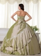 Olive Green Ball Gown Strapless Floor-length Taffeta Appliques Quinceanera Dress