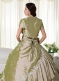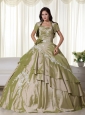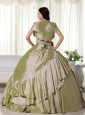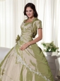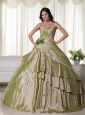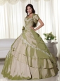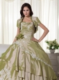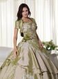 Home >  Quinceanera Dresses >  Pretty Quinceanera Dresses > Olive Green Ball Gown Strapless Floor-length Taffeta Appliques Quinceanera Dress