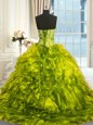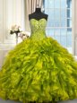 Olive Green Ball Gowns Beading and Ruffles Sweet 16 Dresses Lace Up Organza Sleeveless