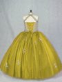 Home >  Quinceanera Dresses >  Sweet 16 Dresses > Olive Green Ball Gowns Tulle Halter Top Sleeveless Beading and Appliques Floor Length Lace Up Quinceanera Dresses