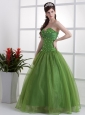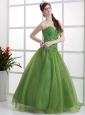 Olive Green Beaded Decorate Bust Prom Dress Sweetheart Organza