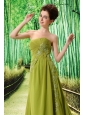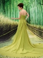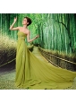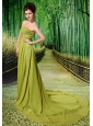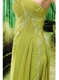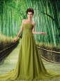 Olive Green Chapel Train Beaded Appliques Chiffon 2013 New Styles Custom Made Prom Gowns