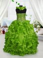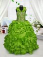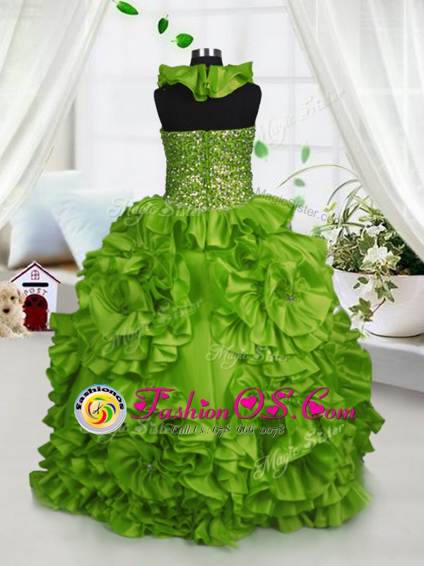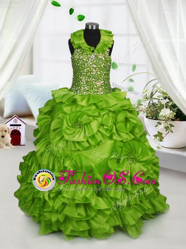 Olive Green Halter Top Zipper Beading and Ruffles Kids Pageant Dress Sleeveless