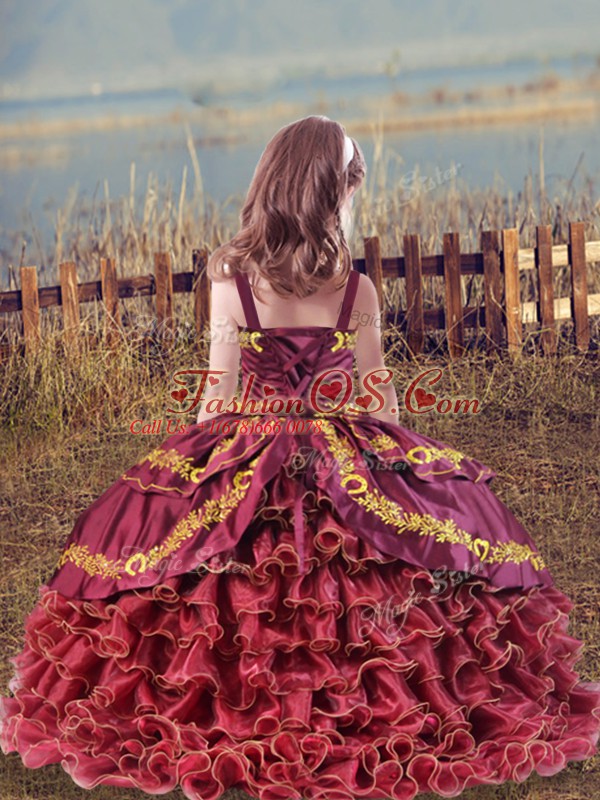 Home >  Special Occasion Dresses >  Lovely Little Girl Pageant Dresses > Olive Green Organza Lace Up Pageant Gowns For Girls Sleeveless Floor Length Beading and Embroidery and Ruffled Layers