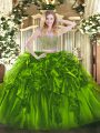 Home >  Quinceanera Dresses >  Unique Quinceanera Dresses > Olive Green Scoop Lace Up Beading and Ruffles Sweet 16 Dresses Sleeveless