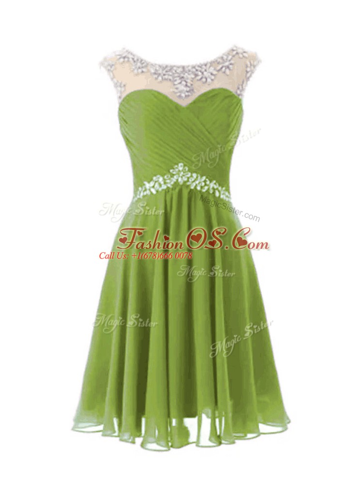 Olive Green Scoop Neckline Beading Homecoming Dress Cap Sleeves Zipper
