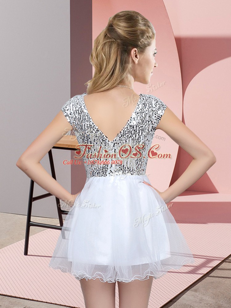 Olive Green Scoop Zipper Sequins Wedding Party Dress Cap Sleeves