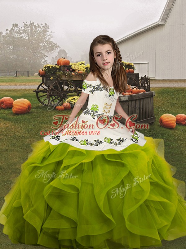 Home >  Special Occasion Dresses >  Lovely Little Girl Pageant Dresses > Olive Green Sleeveless Organza Lace Up Child Pageant Dress for Party and Wedding Party