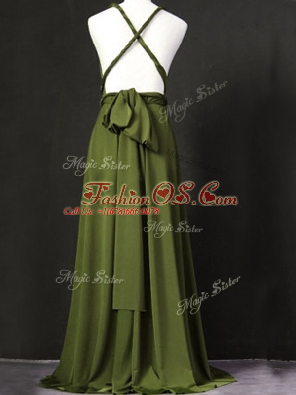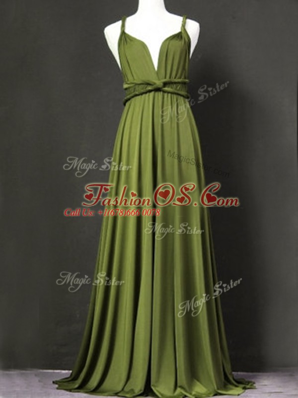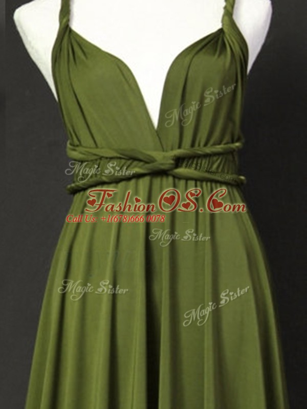 Olive Green Sleeveless Ruching Floor Length Bridesmaid Dresses