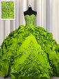 Olive Green Sweet 16 Quinceanera Dress Military Ball and Sweet 16 and Quinceanera and For with Beading and Embroidery and Ruffles and Sequins and Pick Ups Sweetheart Sleeveless Lace Up
