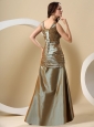 Olive Green V-neck and Ruched Bodice For Mother of the Bride Dress