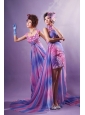 If you ever wanted to wear a rainbow, this dress could be as close as you'll come! It's made in an elegant straps with scoop neckline on the floral bodice. The middle part of the under bust is decorated cockscomb flower which cause much attention to this part. The grasp on the front and back brings the dress soft pleats and elegant ponds which sway beautifully when you move. An empire waist gives you the chance to hide the drawback you may have. The dress is floor length with a graceful court train. For this floor-length style, we do also have a similar one with high-low style, you may just choose the one you like.