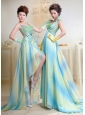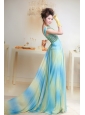 If you ever wanted to wear a rainbow, this dress could be as close as you'll come! This god's creation features a lovely straps, one beaded and the other with same fabric as the dress, which add special design to attract your eyes. The ruched waistband flatter your flawless figure. The floor-length skirt flows freely to create a beautiful sweep train. A hidden zipper makes for easy off and on and secures the dress in place. Do you want to experience the feeling?