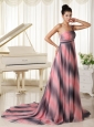 Beauty and comfort combine to create this great multi-color dress. It features an asymmetrical neckline and gathered texture on the bodice, a one shoulder design which bind with the waistband. The skirt has an empire-waist and falls in soft pleats and folds to your feet, leaving a lovey court train in the back just a like a small pool. A stunning gown for any formal event or occasion on your social calendar.
