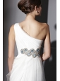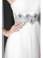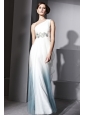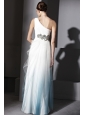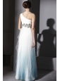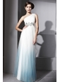 A romantic clean evening dress accents a one-shoulder ruching neckline and a beaded waistband, the out layer of ombre tulle gives the dress a fantastic look. With the ruching bodice, your beauty curves is clearly reprented, and the exquisite waistband encrusted with silver and blue beads attracts countless of appreciated eyes. Wearing this dress, you will sure be the party queen.