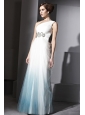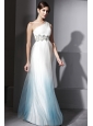 Ombre Color Empire One Shoulder Floor-length Tulle Beading Prom Dress