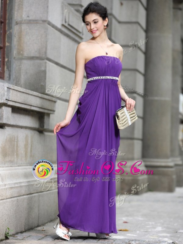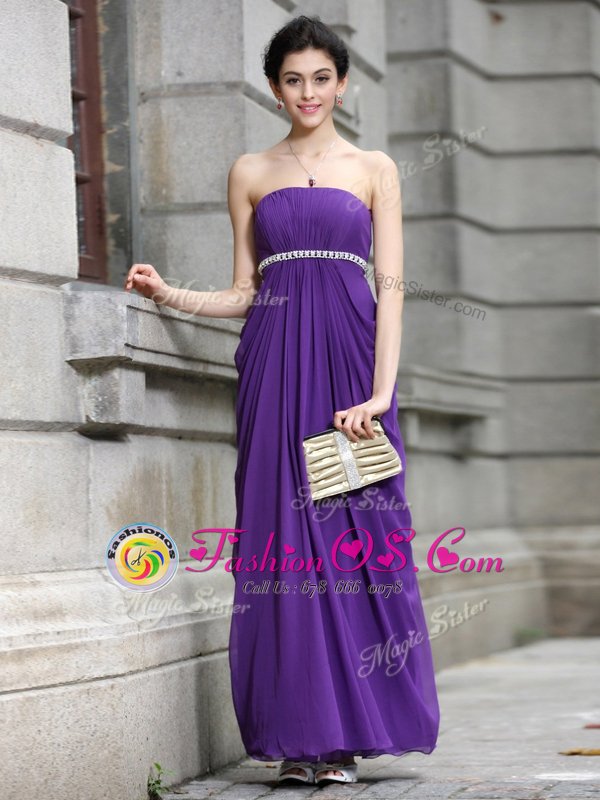 On Sale Ankle Length Column/Sheath Sleeveless Purple Prom Gown Zipper