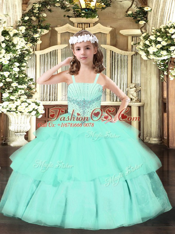Home >  Special Occasion Dresses >  Beautiful Kids Pageant Dresses > On Sale Apple Green Sleeveless Beading and Ruffled Layers Floor Length High School Pageant Dress