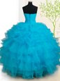On Sale Baby Blue Organza Zipper Quinceanera Dress Sleeveless Floor Length Beading