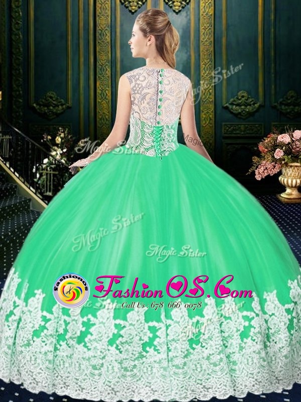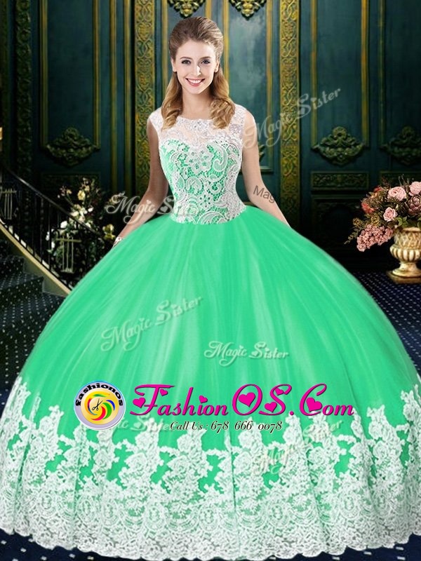 On Sale Ball Gowns Quinceanera Gowns Apple Green Scoop Tulle Sleeveless Floor Length Zipper