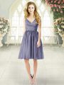 On Sale Blue A-line V-neck Sleeveless Taffeta Knee Length Zipper Ruching Homecoming Dress