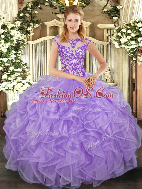 On Sale Cap Sleeves Beading and Appliques and Ruffles Lace Up Quinceanera Gown