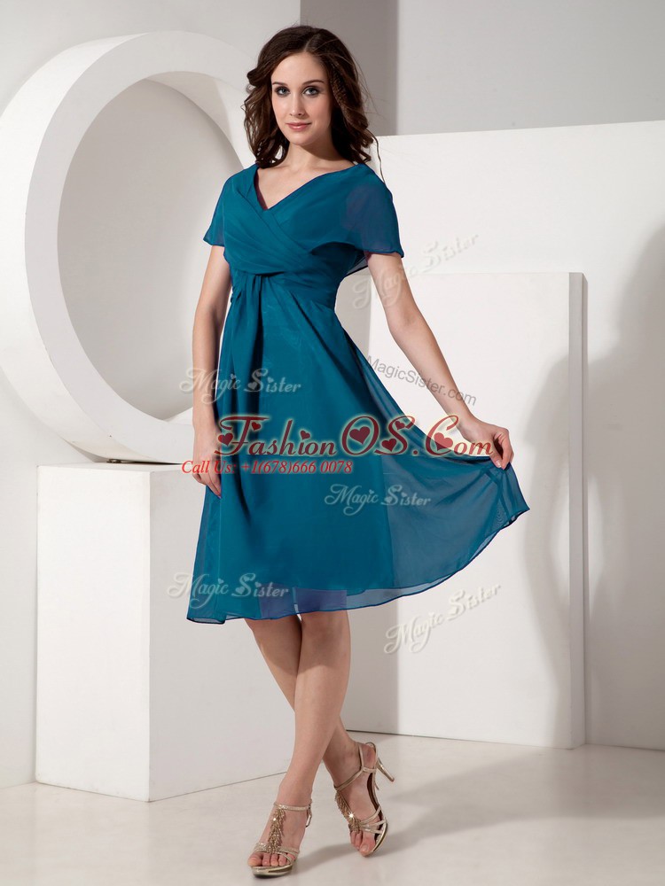 On Sale Chiffon Short Sleeves Knee Length Mother Of The Bride Dress and Ruching