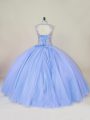 On Sale Floor Length Lavender 15 Quinceanera Dress Tulle Sleeveless Beading
