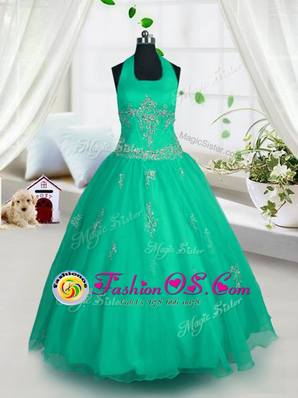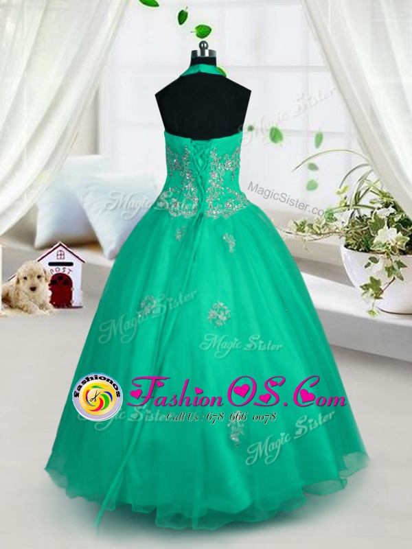Home >  Special Occasion Dresses >  New Style Little Girl Pageant Dresses > On Sale Halter Top Sleeveless Appliques Lace Up Little Girl Pageant Dress