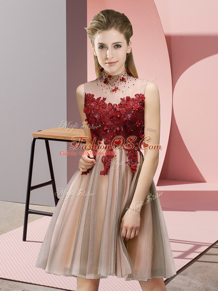 On Sale Pink High-neck Lace Up Appliques Quinceanera Court of Honor Dress Sleeveless
