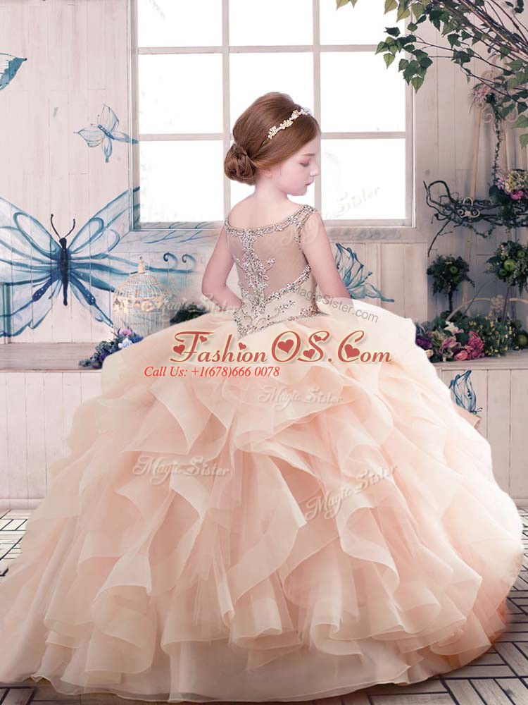 Home >  Special Occasion Dresses >  2019 Little Girl Pageant Dresses > On Sale Purple Ball Gowns Scoop Sleeveless Organza Floor Length Zipper Beading and Ruffles Little Girls Pageant Dress