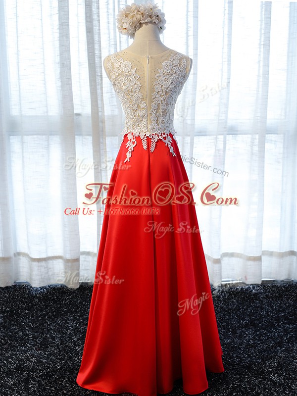 On Sale Royal Blue Elastic Woven Satin Zipper Sleeveless Floor Length Lace and Appliques