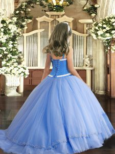 On Sale Rust Red Lace Up Straps Appliques Girls Pageant Dresses Tulle Sleeveless Sweep Train