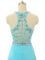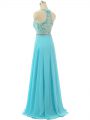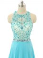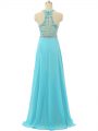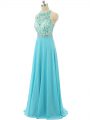 On Sale Sleeveless Floor Length Beading Zipper Party Dress for Girls with Aqua Blue