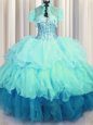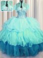 On Sale Three Piece Visible Boning Floor Length Multi-color Quince Ball Gowns Sweetheart Sleeveless Lace Up