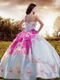 Home >  Quinceanera Dresses >  Perfect Quinceanera Dresses > On Sale White Ball Gowns Strapless Sleeveless Taffeta Floor Length Lace Up Embroidery and Bowknot Ball Gown Prom Dress