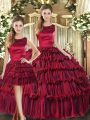 Home >  Quinceanera Dresses >  Detachable Quinceanera Skirts > On Sale Wine Red Sweet 16 Dress Military Ball and Sweet 16 and Quinceanera with Ruffled Layers Scoop Sleeveless Lace Up