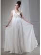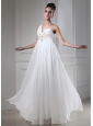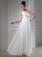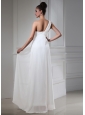 This dress is simple but gorgeous! It features a beautiful ruched bodice with a one shoulder strap and beaded bust. The wrapped bodice shows your slim figure and the chic empire waist camouflages a pear shape or thick waist and creates an illusion of height for short or petite figures. The floor length skirt moves and sways when you walk, creating a wonderful silhouette. By the way, this gorgeous one shoulder empire wedding dress is the new arrival in 2013!