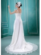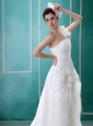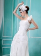 One Shoulder A-line Hand Made Flowers Court Train Church Custom Made Wedding Dress