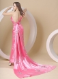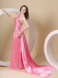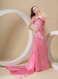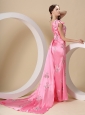 Home >  Prom Dresses >  Elegant Prom Dresses > One Shoulder Appliques and Watteau Train For Rose Pink Prom Dress