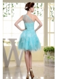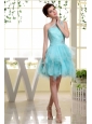 One Shoulder Baby Blue and Beading For Prom Dress With Ruffles