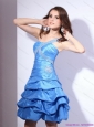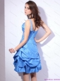 One Shoulder Baby Blue Plus Size Prom Dresses with Pick Ups and Beading