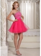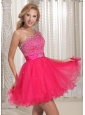 One Shoulder Beaded Decorate Bust Sweet Prom / Cocktail Dress With Hot Pink In Texas