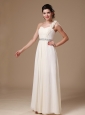 One Shoulder Beaded Decorate Waist Prom Gowns With Chiffon Hand Made Flowers For Custom Made In Troy Alabama