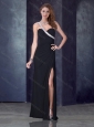 One Shoulder Black Prom Dress with High Slit and Beading