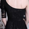 Silhouette: Column/Sheath Neckline: one shoulder Sleeve Length: sleeveless Hemline/Train: floor length Back Detail: side zipper Embellishment: lace,sequins Fabric: lace Shown Color: black(Color & Style representation may vary by monitor.) Occasion: prom,party Season: spring,summer,fall,winter Fully Lined: Yes Built-In Bra: Yes