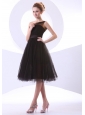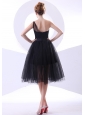 One Shoulder Black Tulle A-line Knee-length 2013 Prom Dress