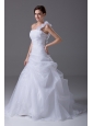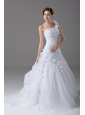 Home >  Wedding Dresses >  Elegant Wedding Dresses > One Shoulder Brush / Sweep Organza Handle-Made Flower 2012 Wedding Dress A-Line / Princess