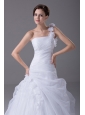 One Shoulder Brush / Sweep Organza Handle-Made Flower 2012 Wedding Dress A-Line / Princess