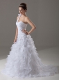 Home >  Wedding Dresses >  Elegant Wedding Dresses > One Shoulder Brush / Sweep Ruffles Organza Garden / Outdoor Wedding Dress A-Line